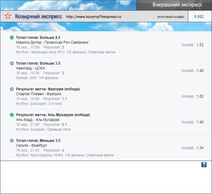 Кнопка перехода на сегодняшний экспресс находится под этим текстом.