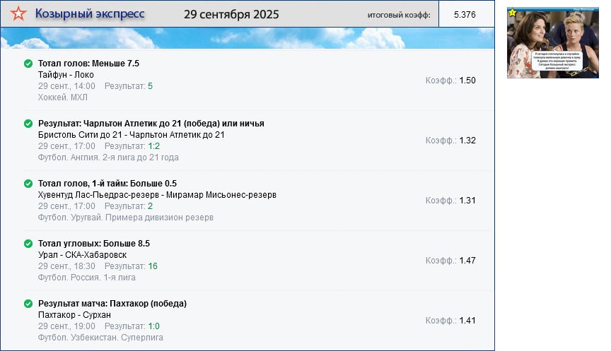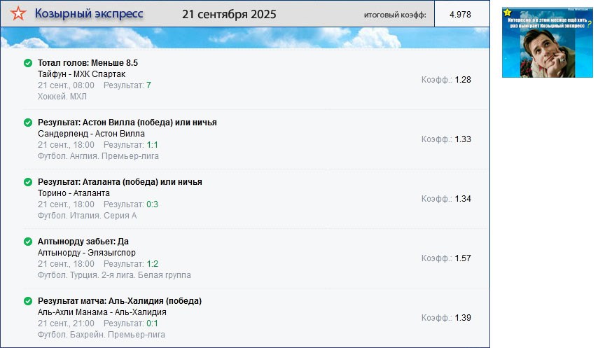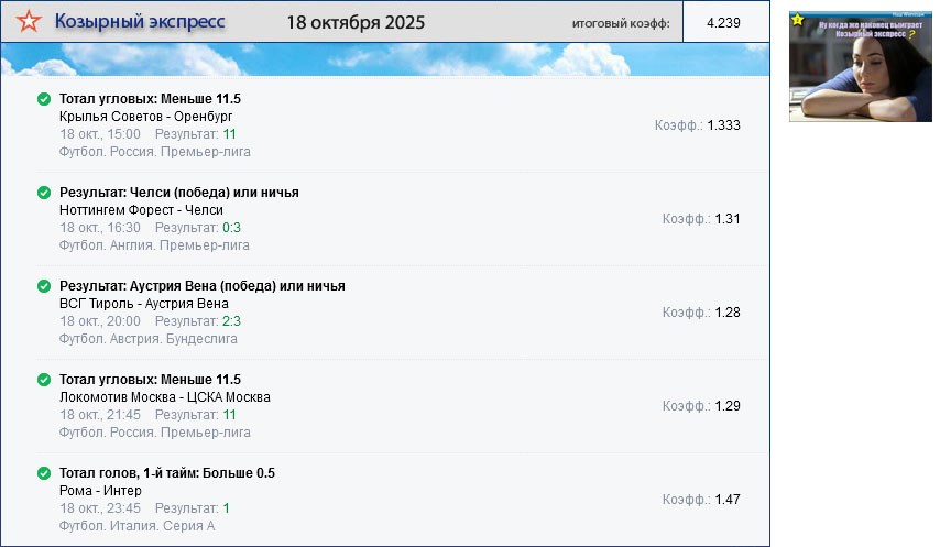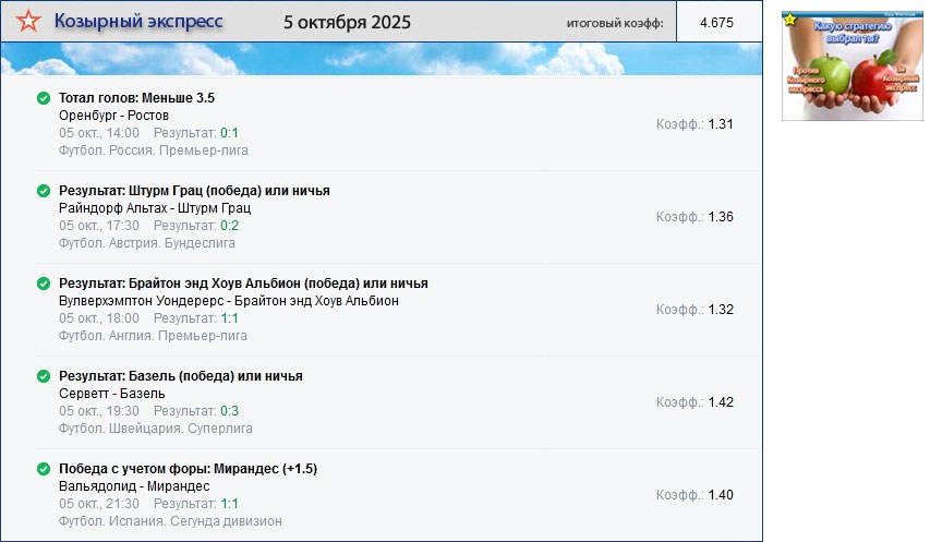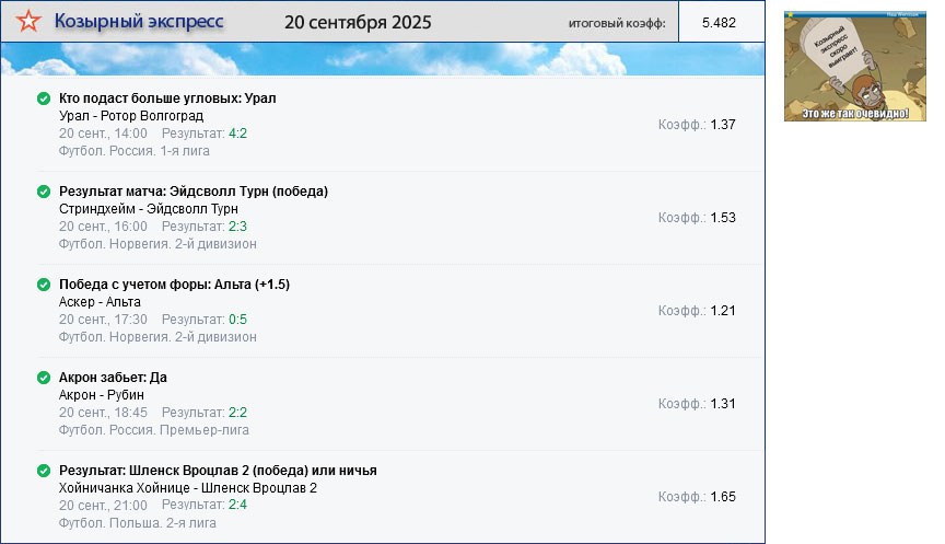 Архив выигравших экспрессов. Проигранные экспрессы публикуются один раз на главной странице сайта.